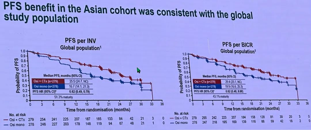 FLAURA2研究全球人群的PFS