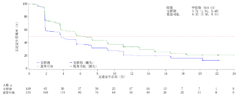 在安全性方面,恩替司他最常见的≥3级血液学不良反应包括中性粒细胞减少症(43.8%)、血小板减少症(8.5%)和白细胞减少症(6.4%),而最常见≥3级非血液学治疗相关不良反应(TRAE)为天门冬氨酸氨基转移酶升高(2.6%)。此外,恩替司他的平均消除半衰期长达61.9小时,1周1次的长间隔用药,能够大大减轻药物负担和提高治疗依从性。因此,无论从疗效还是安全性、用药便捷性等方面,恩替司他在同类药物临床试验中均表现非常出色。