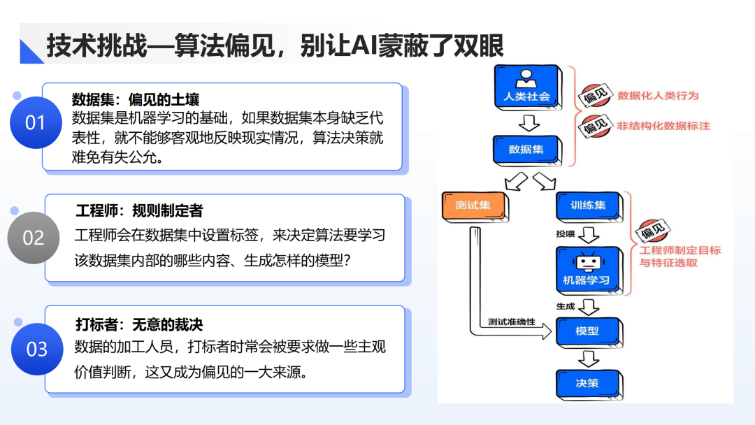 人类认知偏见:数据标注过程中的主观价值判断也会引入偏见,影响AI模型的客观性和准确性。