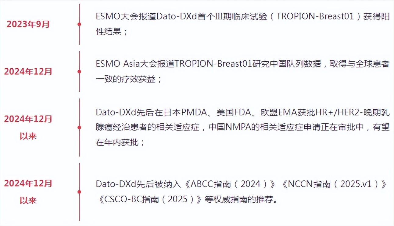 [11]Bardia A,Jhaveri K,Im SA,et al.Datopotamab Deruxtecan Versus Chemotherapy in Previously Treated Inoperable/Metastatic Hormone Receptor-Positive Human Epidermal Growth Factor Receptor 2-Negative Breast Cancer:Primary Results From TROPION-Breast01.J Clin Oncol.2025;43(3):285-296.