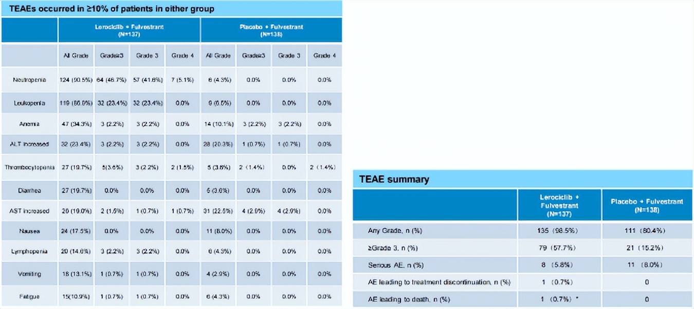[10]Xichun Hu, et al. LEONARDA-2: Lerociclib plus letrozole versus placebo plus letrozole in HR+/ HER2- advanced or metastatic breast cancer.. J Clin Oncol 42, 2024 (suppl 16; abstr 1052).