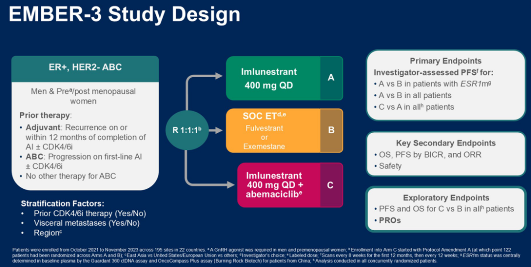 Imlunestrant单药或联合阿贝西利治疗ER+/HER2-晚期乳腺癌患者:EMBER-3 III期试验患者报告结局(PRO)