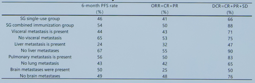 图7.SG单独及联合免疫治疗转移性三阴性乳腺癌患者的疗效和安全性的真实世界研究PFS、ORR、DCR(2024年SABCS,P1-07-28)