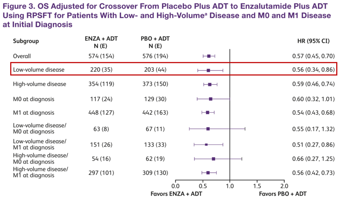 [10].Andrew J.Armstrong et al.Overall survival(OS)in patients(pts)with metastatic hormone-sensitive prostate cancer(mHSPC)treated with enzalutamide(ENZA)+androgen deprivation therapy(ADT)by high or low disease volume and progression to mHSPC(M0 at diagnosis)or de novo mHSPC(M1 at diagnosis):Post hoc analysis of the phase 3 ARCHES trial..JCO 40,115-115(2022).