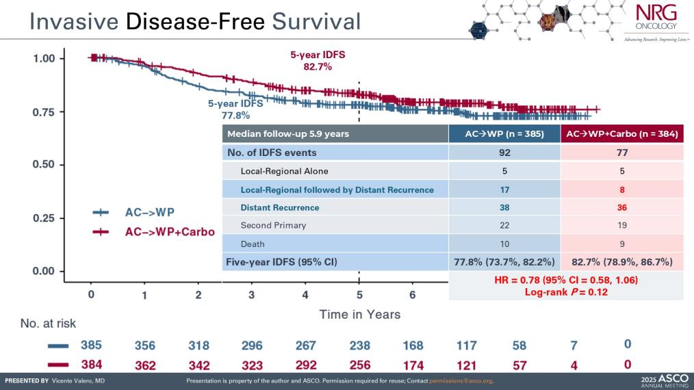 [2]Vicente Valero,et al.NRG-BR003:A randomized phase III trial comparing doxorubicin plus cyclophosphamide followed by weekly paclitaxel with or without carboplatin for node-positive or high-risk node-negative TNBC.ASCO 2025;Abstract#LBA509
