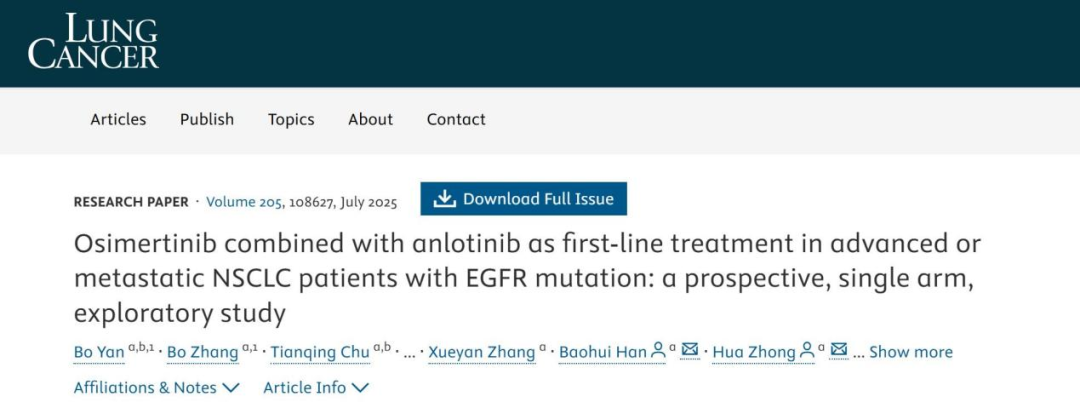 奥希替尼联合化疗作为EGFR突变(EGFRm)晚期非小细胞肺癌(NSCLC)的一线治疗方案(FLAURA2研究)显著延长了无进展生存期(PFS)。为规避化疗毒性和给药不便,本研究探索了奥希替尼(三代EGFR-TKI)联合抗血管生成多靶点TKI安罗替尼的口服无化疗方案用于一线治疗的可行性。