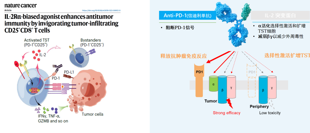 双靶点的单克隆抗体是近2年及未来的另一大创新药物研发热点,包括ADC和ICI均可进行双抗研发升级。2025年ASCO大会上,郭军教授在口头报告中汇报的一项1/2期研究,采用的是一种首创新药PD-1/IL-2α偏向双抗(IBI363)。