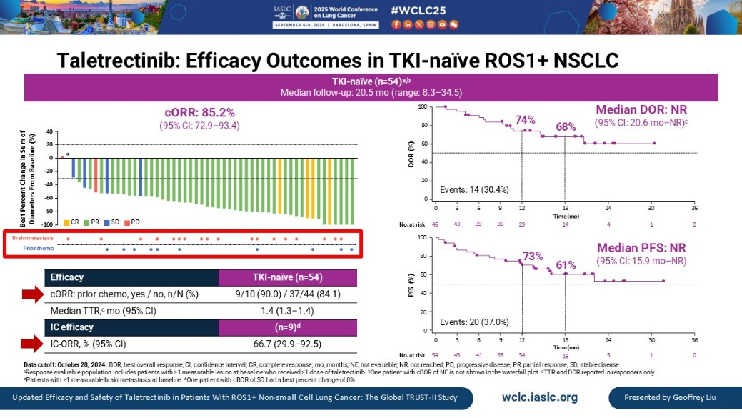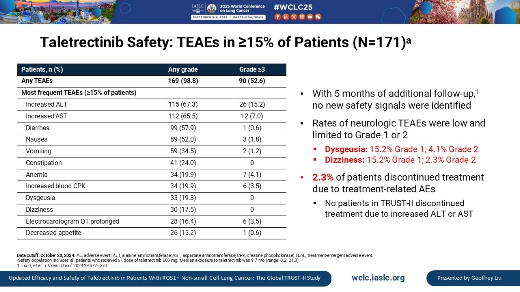[2]G.Liu,et al.Updated Efficacy and Safety of Taletrectinib in Patients With ROS1+Non-Small Cell Lung Cancer:The Global TRUST-II Study.2025WCLC.MA02.02.