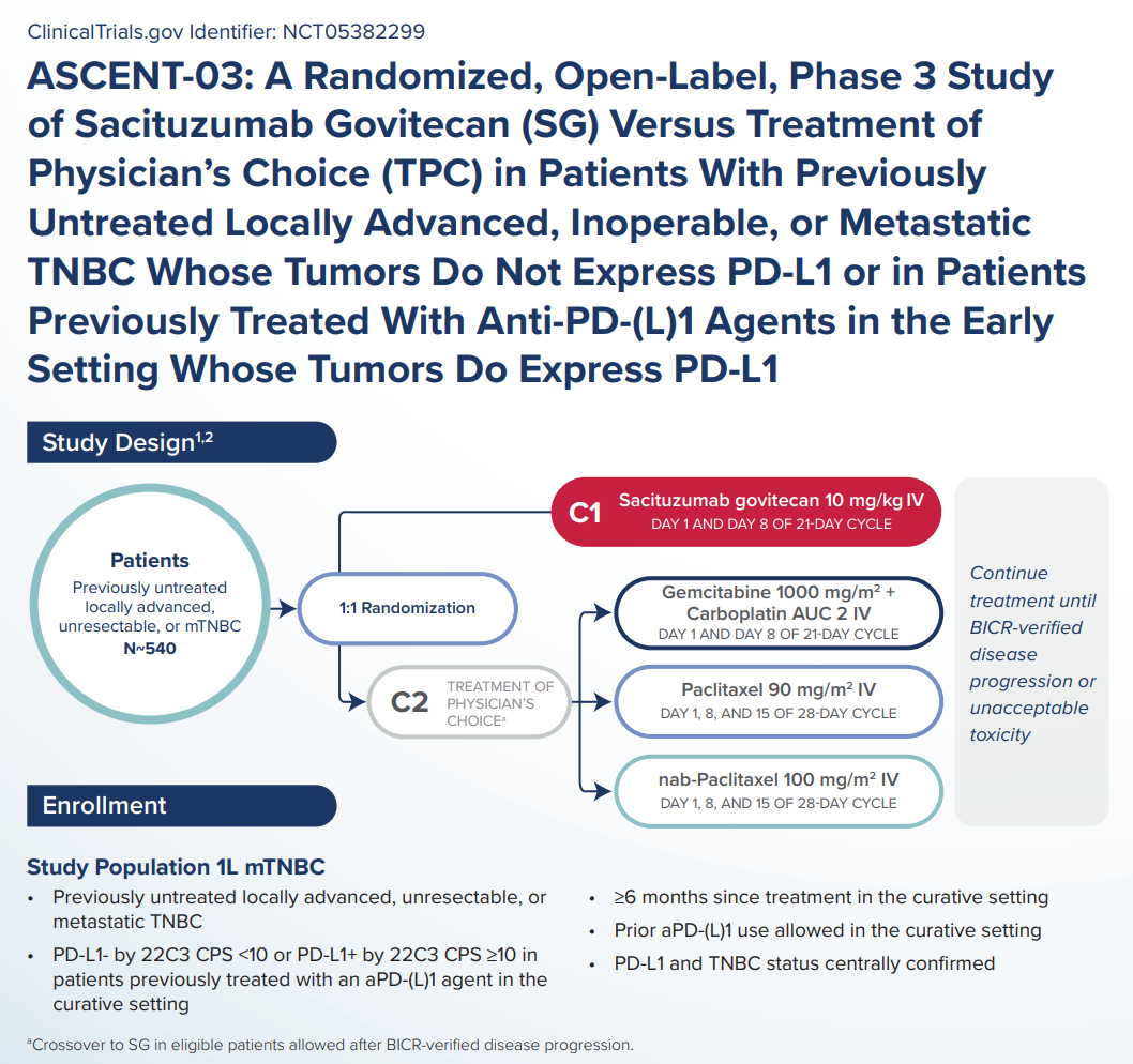 [13]https://www.gilead.com/news/news-details/2025/ascent-03-trodelvy-demonstrates-highly-statistically-significant--clinically-meaningful-improvement-in-progression-free-survival-in-patients-with-first-line-metastatic-triple-negative-breast