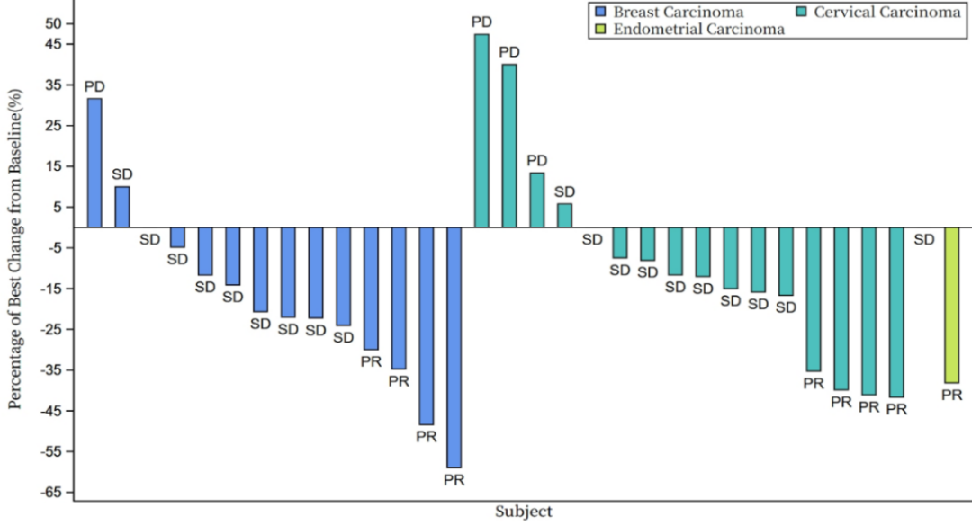 综上,JS105单药治疗或联合治疗在晚期癌症患者中表现出良好的耐受性、可管理的安全性特征和明确的抗肿瘤活性,尤其是与内分泌疗法和CDK4/6抑制剂的联合治疗方案,展现出更高的肿瘤缓解率和控制率,值得进一步研究。