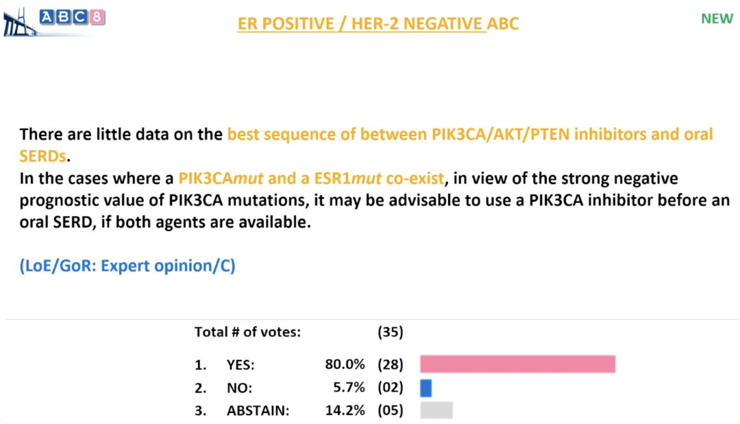 关于PIK3CA/AKT/PTEN抑制剂与口服SERD的最佳用药顺序,目前数据有限。