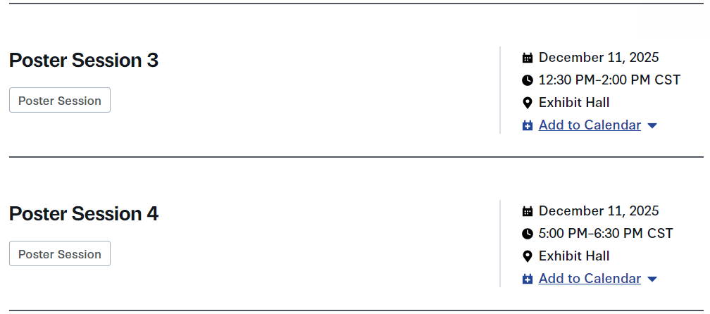 两场海报展示:1、Poster Session 3;2、Poster Session 4。