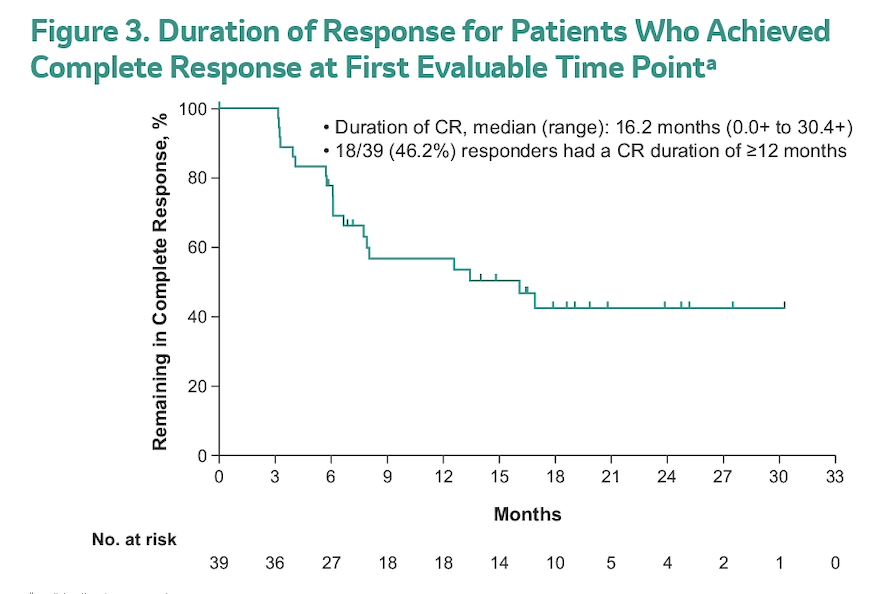 以免疫检查点抑制剂(ICI)为代表的免疫治疗已在转移性膀胱癌中获得较大成功,能否在更早阶段膀胱癌运用ICI也成为临床研究热点。在KEYNOTE-057研究中,采用PD-1抗体Pembrolizumab治疗BCG失败的原位癌(n=103),3个月时的CR率为38.8%。2020年ASCO大会上更新了达到CR患者的长期随访数据,CR维持时间的中位数为16.2个月,46.2%的患者维持CR的时间超过12个月。该研究显示出,在BCG失败的CIS患者中,免疫治疗能够使相当一部分患者获得较长时间肿瘤控制。正因为如此,美国FDA今年将Pembrolizumab批准用于不适宜接受或者拒绝接受膀胱根治性手术的BCG失败的CIS患者,从而为这些患者争取了保留膀胱的机会。
