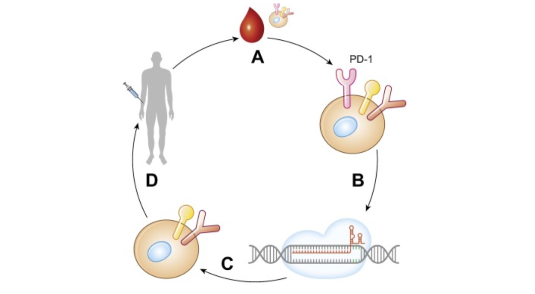 2016年,四川大学华西医院的卢铀教授团队开展了全球第一例应用CRISPR/Cas9技术的治疗肺癌的人体临床试验。在这项非随机、开放标记的Ⅰ期研究(NCT02793856)中,研究人员收集实体瘤患者的外周血淋巴细胞,在T细胞中进行CRISPR/cas9介导的免疫检查点基因PD-1的敲除,并在体外扩增,然后输回病人体内,从而诱导对肿瘤细胞的免疫反应。