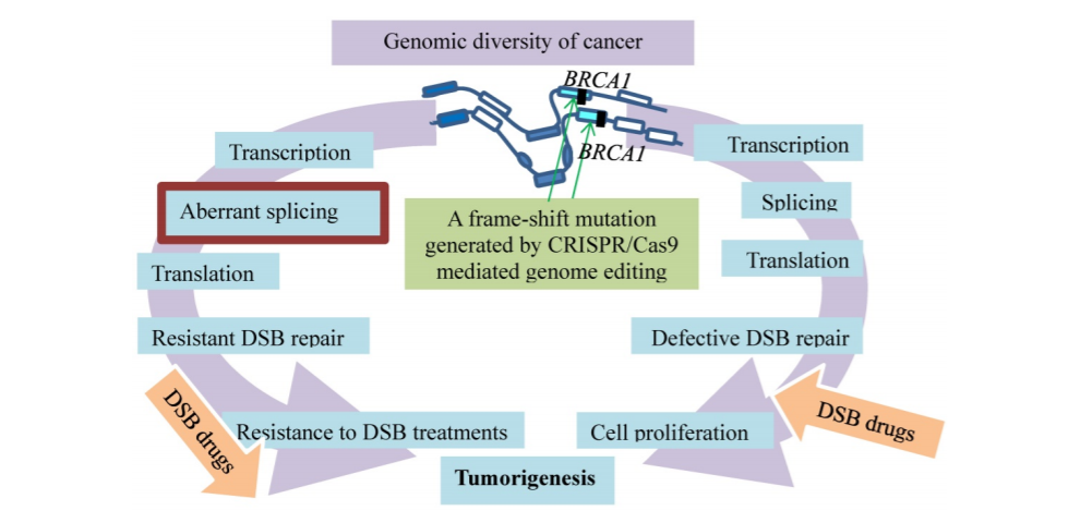 乳腺癌耐药基因——PARP抑制剂已经临床应用于BRCA突变乳腺癌的治疗。一些患者虽然最初表现出改善,但最终会发生药物抵抗和疾病进展。CRISPR/Cas9技术表明,BRCA1基因的种系突变被体细胞选择性剪接绕过,从而导致对抗癌治疗的耐药性。