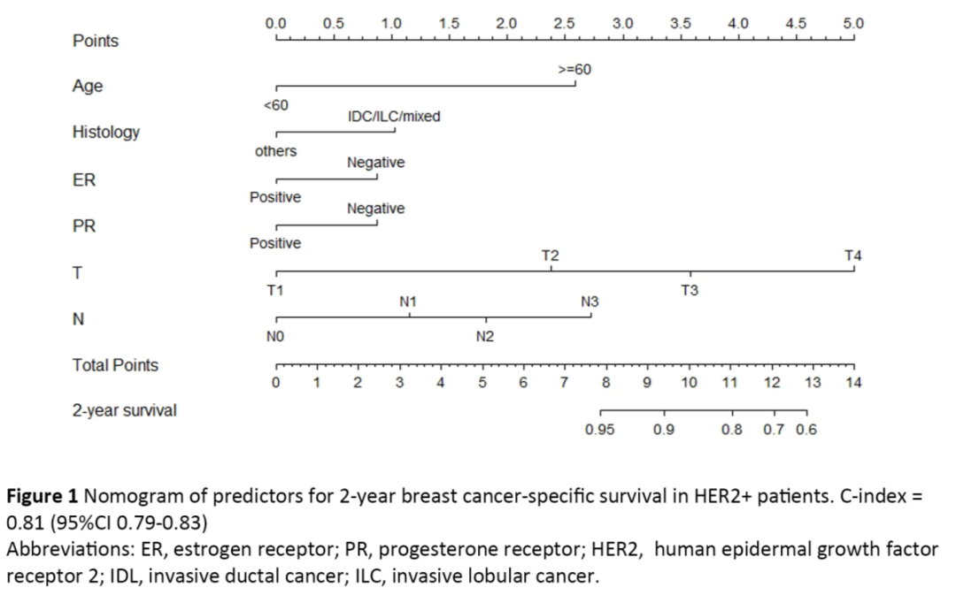 SABCS 2020 中国之声丨朱丽教授团队构建出HER2+早期乳腺癌生存诺模图模型可更好助力临床决策