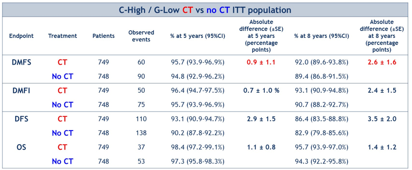 次要研究终点ITT分析,结果对淋巴结阴性和淋巴结1-3阳性患者均有效。