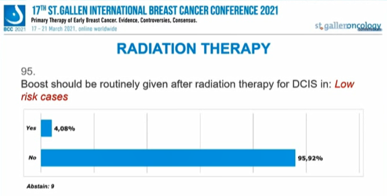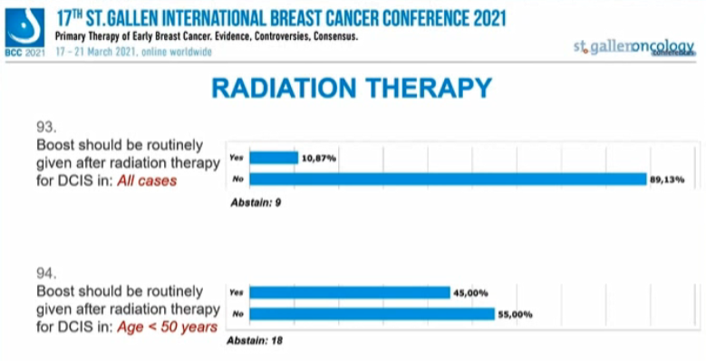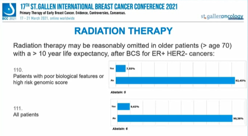 编者按:在昨天的首场SG-BCC专家投票中,已经讨论了新辅助治疗后的腋窝处理,并涉及了部分乳腺手术、放疗的内容。行至会议的第二场专家投票,也再次针对早期乳腺癌的放疗、手术治疗中的其他问题进行讨论。