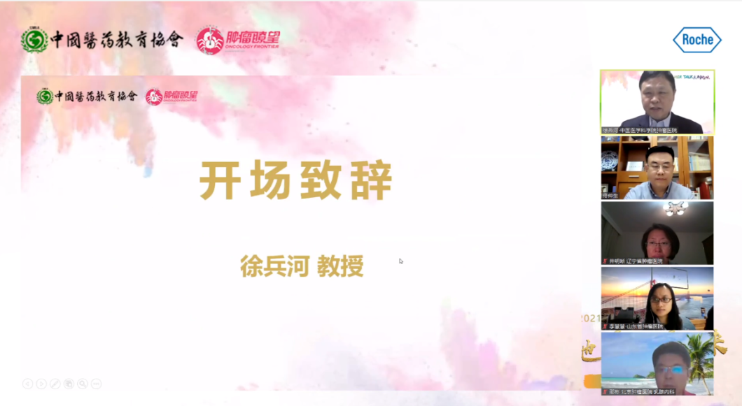 2021年3月31日19:00,HER TALK系列论坛直播活动——创新药物专场开幕,作为本场大会主席,中国医学科学院肿瘤医院徐兵河教授首先开场致辞,他指出本场会议主要就T-DM1和PD-L1创新药物临床试验进展及创新药践行者临床实践经验进行交流和讨论,愿在各种创新药物的助攻下,早期患者能“走向治愈”,晚期患者能生活的“更长更好”。
