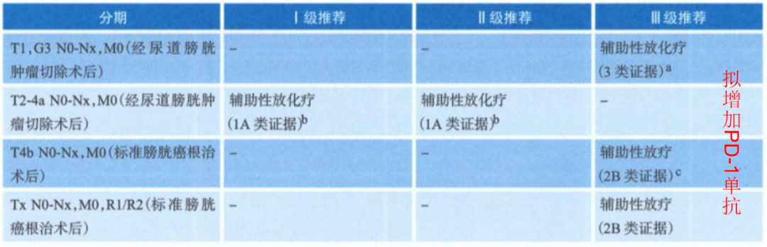 基于纳武利尤单抗在MIBC术后辅助治疗的临床III期CheckMate-274研究成功,且PD-L1阳性患者获益更显著,2021年CSCO-UC指南更新计划增加PD-1单抗术后辅助治疗作为Ⅲ级推荐。而对手术切缘不净、局部病变较晚,仅行姑息手术的患者,术后放疗可能提高局部控制率;对pT3/4和或LN+,且为M0的患者,根治性膀胱切除术后行辅助化疗仍有争议。