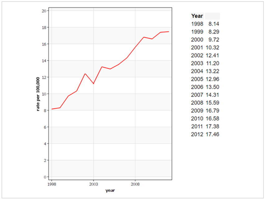 实际上,随着经济水平的发展、生活方式的西化,中国男性的前列腺癌发病率呈明显上升趋势(见下图),从1998年的8.14/10万人增长到2012年的17.46/10万人,短短十余年间翻了二倍多[3]