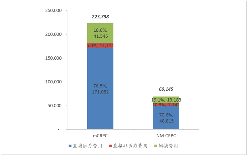 Δ中国首个针对NM-CRPC疾病负担的研究显示:mCRPC阶段患者的年人均总成本约为NM-CRPC的3.2倍[10]