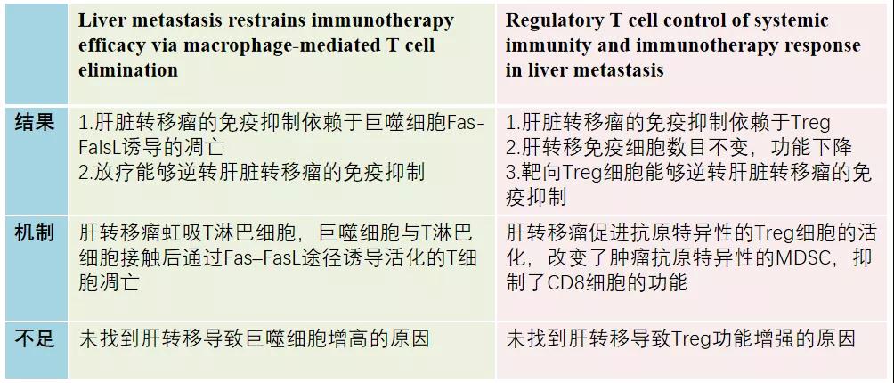 已经有一些研究表明,肝转移是降低免疫治疗疗效的重要原因。比如非小细胞肺癌或黑色素瘤患者一旦发生肝转移,其免疫效果较差。一些动物模型的研究也验证了这一点。目前,主要有两种机制来解释这一现象:一是T细胞的数量减少,主要是由于转移瘤内产生大量巨噬细胞,使效应T细胞发生接触性凋亡;二是T细胞的质量降低,主要是由于转移瘤内Treg细胞功能亢进,从而抑制效应T细胞。