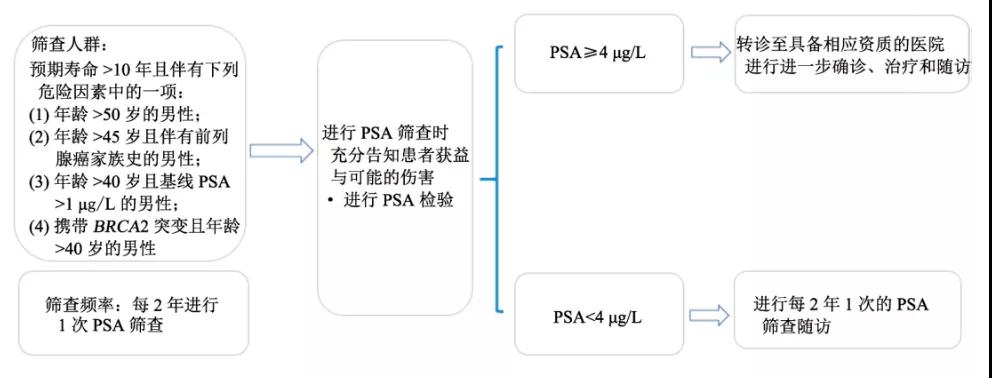 除了普通人群的PSA筛查起始年龄以外,该共识还明确了有前列腺癌家族史及携带BRCA2突变人群的筛查年龄,以及如何在筛查过程中增加初筛阳性人群的转诊率。