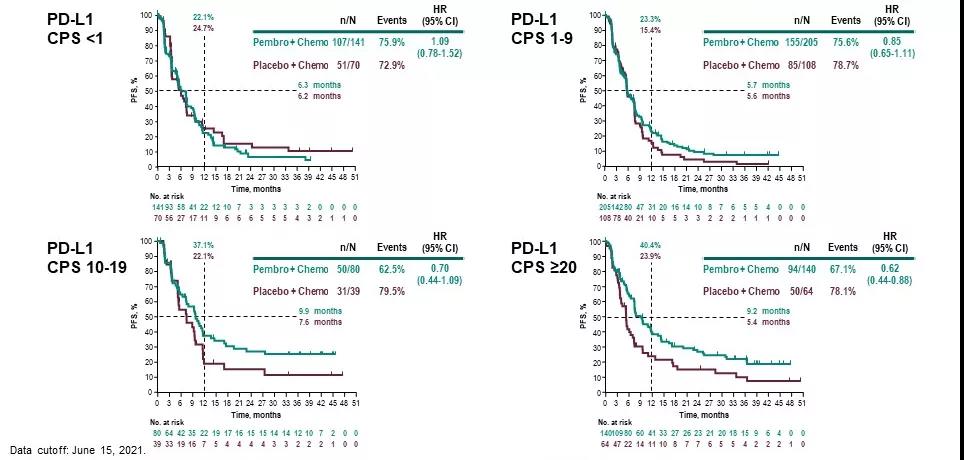 KEYNOTE-355研究不同PD-L1 CPS亚组的PFS