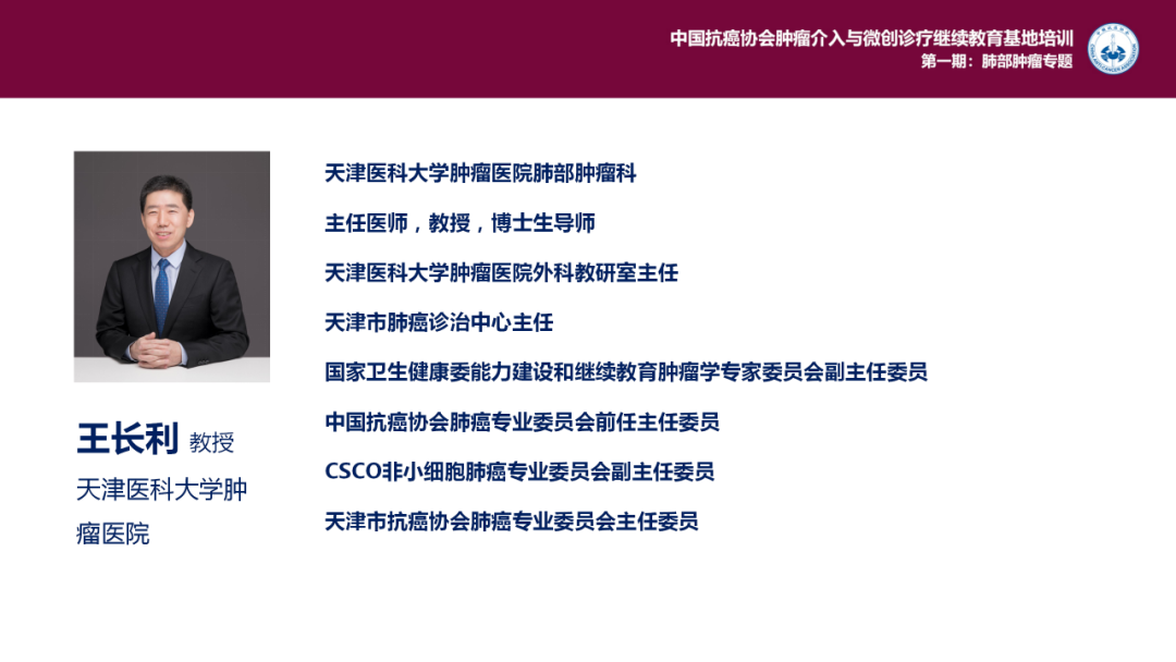 中国抗癌协会肺癌专业委员会前任主任委员、天津市肺癌诊治中心主任、肺部肿瘤外科专家:王长利 教授