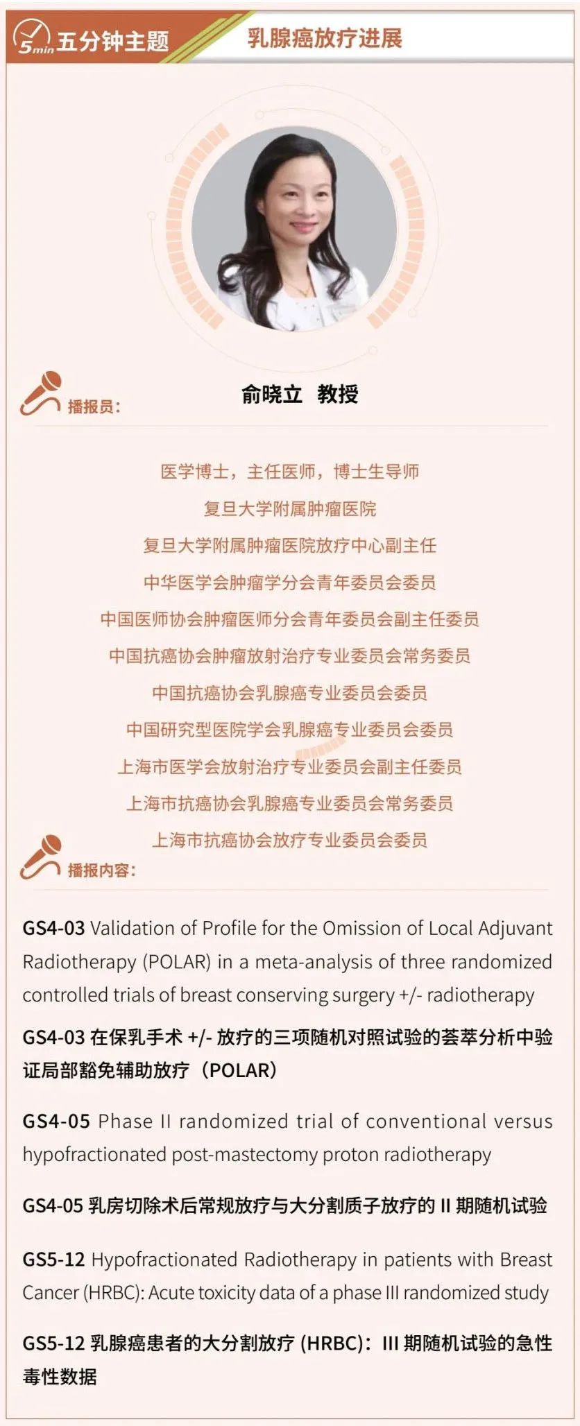 SABCS五分钟丨俞晓立教授:乳腺癌放疗进展