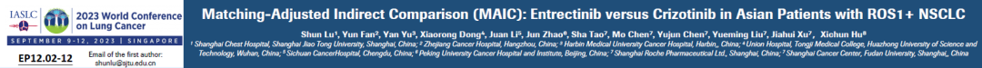 Matching-Adjusted Indirect Comparison(MAIC):Entrectinib versus Crizotinib in Asian Patients with ROS1+NSCLC
