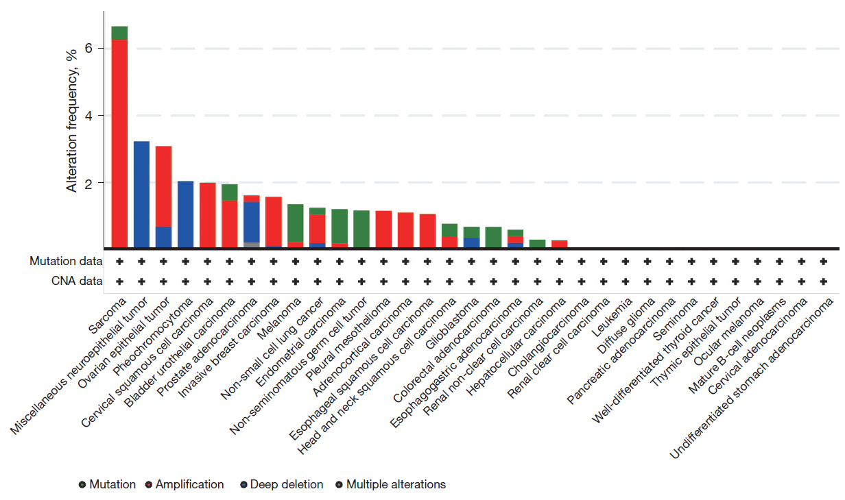 图3 TROP2在恶性肿瘤中的突变