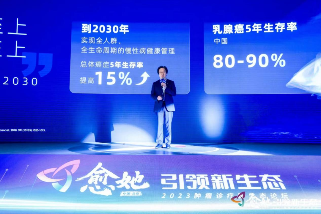 “女人是天,男人是地。女人好,男人才有可能顶天立地。”聚光灯下,江泽飞教授缓缓步入舞台中央,在他无奈又遗憾的声音中,映入眼帘的,是一片触目惊心的数据——全球每年有226.1万女性罹患乳腺癌,在中国每年也有41.6万例新发乳腺癌患者。乳腺癌已然成为威胁女性健康的首位恶性肿瘤。作为军人,江泽飞教授充满坚定,“人民至上、生命至上”是党中央的号召;作为医生,他深感肩上义不容辞的责任,《健康中国2030规划纲要》明确要求,到2030年,要实现全人群,全生命周期的慢性病健康管理,将我国整体癌症的五年生存率提升15%,乳腺癌的5年生存率提高至80%~90%。我们已经踏上了实现乳腺癌治愈的道路,在HER2阳性乳腺癌领域,循着抗HER2前行的方向,“愈她”不再遥远。