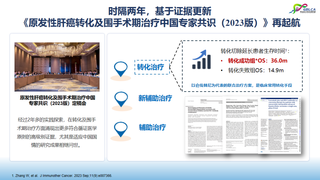 孙惠川教授提出肝癌转化治疗是肝癌领域多学科诊疗的优秀范例,将外科、内科、介入科、放射科、病理科等有机结合,加深了临床对疾病发展、药物治疗的认识;同时,近年在转化及围手术期治疗方面涌现出更多符合循证医学原则的高级别证据,尤其是适应中国国情的研究成果相继问世,不仅使转化治疗成为了中国中晚期肝癌患者获得根治的重要策略,为患者带来了总生存期延长至36个月的突破,更形成了我国独具特色的指南和共识,《原发性肝癌转化及围手术期治疗中国专家共识(2023版)》也将为中国转化治疗事业推向新高度。