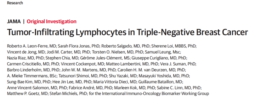 Leon-Ferre,Roberto A et al.“Tumor-Infiltrating Lymphocytes in Triple-Negative Breast Cancer.”JAMA vol.331,13(2024):1135-1144.doi:10.1001/jama.2024.3056